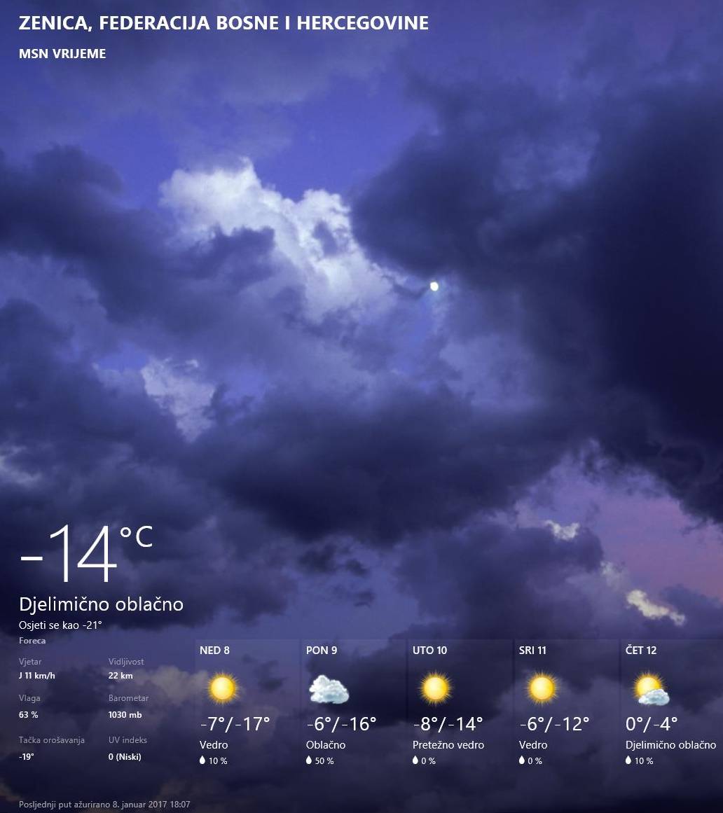 Zeničani su tako ostali i bez alternativne mogućnosti da ugriju stanove električnim grijalicama, posljednja informacija iz Gradske uprave je “da pozivaju sve nadležne da budu na usluzi građanima“. Za sada nema informacija koliko su teški kvarovi i kada će se stanje sa strujom normalizovati. Iz Mittala smo popodne dobili prilično loše vijesti da grijanja sigurno neće biti do kasno uvečer, pa ni informacija o mogućem opravku kotlova.