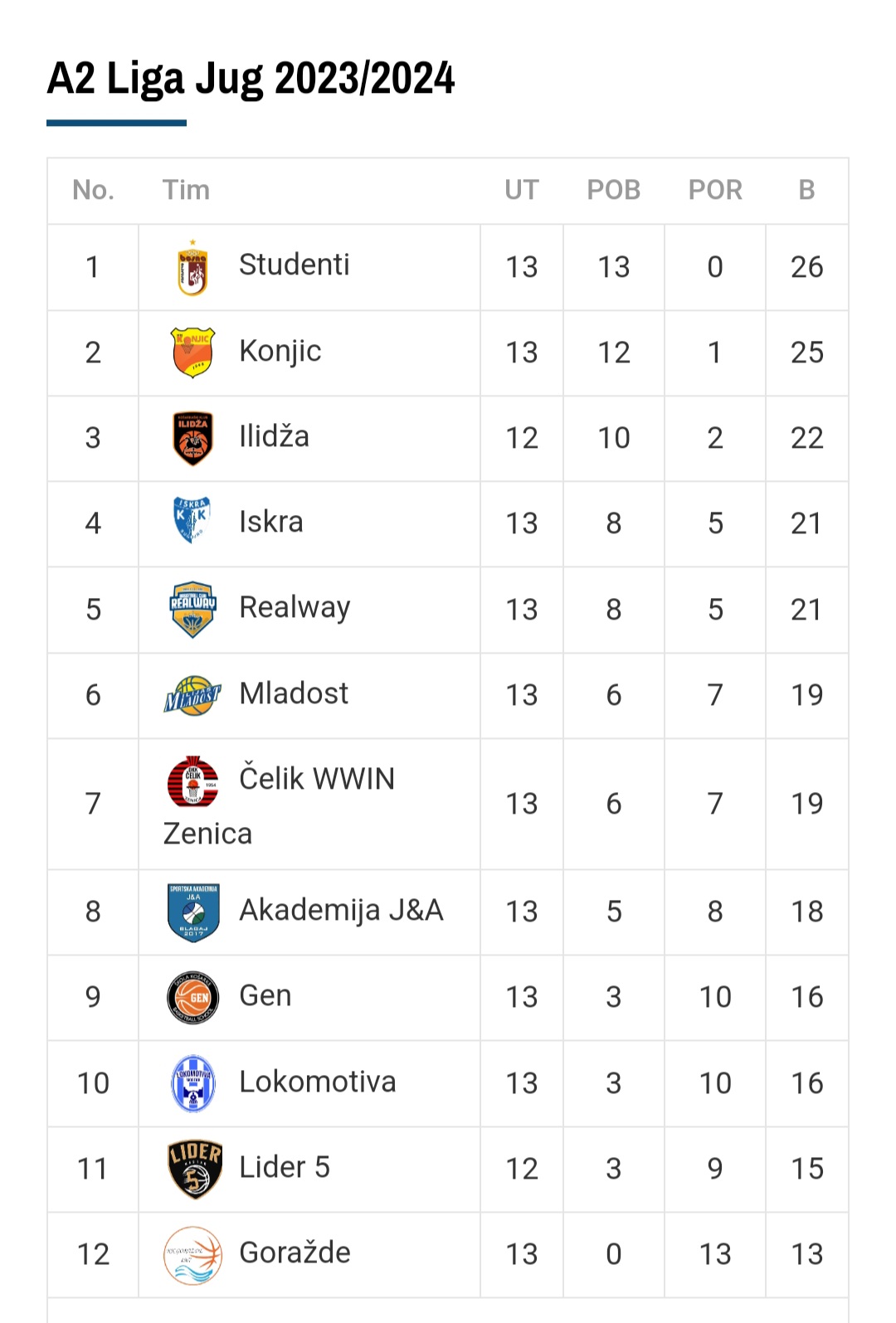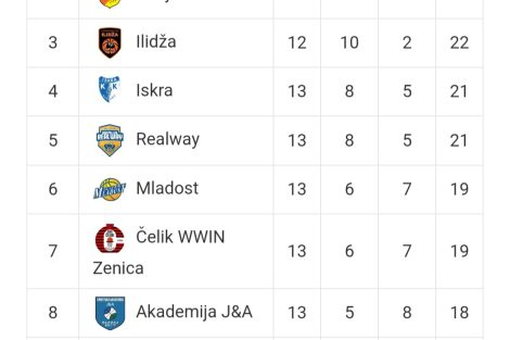 OKK Čelik WWIN je na omjeru od 6 pobjeda i 7 poraza, 7. mjesto, 19 bodova u 13 odigranih utakmica.