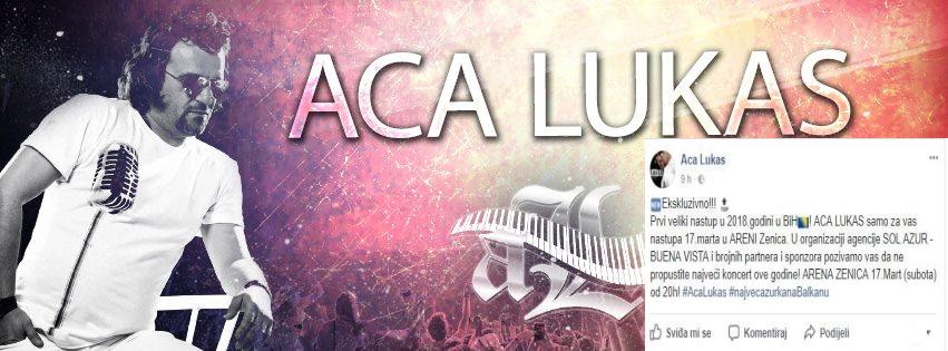 ARENA ZENICA 17.Mart (subota) od 20h! – navedeno je na oficijelnoj Facebook stranici srbijanskog pjevača Aleksandra Vuksanovića – Ace Lukasa–