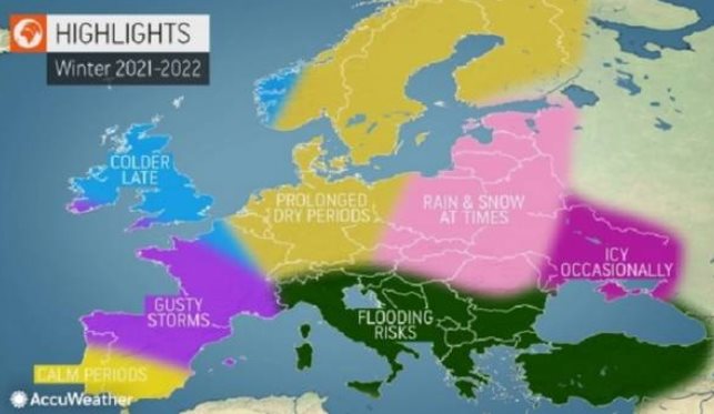 Prognostičari AccuWeathera kažu da će unutarnji dijelovi istočne Europe ove zime imati neočekivano hladni zrak. Područje s najvećim rizikom za temperature nekoliko stupnjeva ispod normalne obuhvaća područje od središnje Ukrajine prema sjeveru do Latvije i Estonije te do zapada do Slovačke i Poljske.