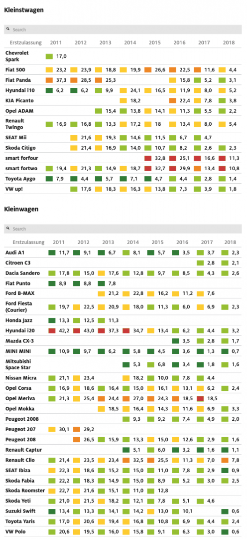 Pozitivna iznenađenja su mali automobili Fiat Punto i Dacia Sandero. S Puntom je zapanjujuće da su i stari primjerci (godina proizvodnje 2011. – 2013.) imali malo kvarova. A Dacia Sandero dokazuje da jeftino ne znači i loše te je vrlo kvalitetna.