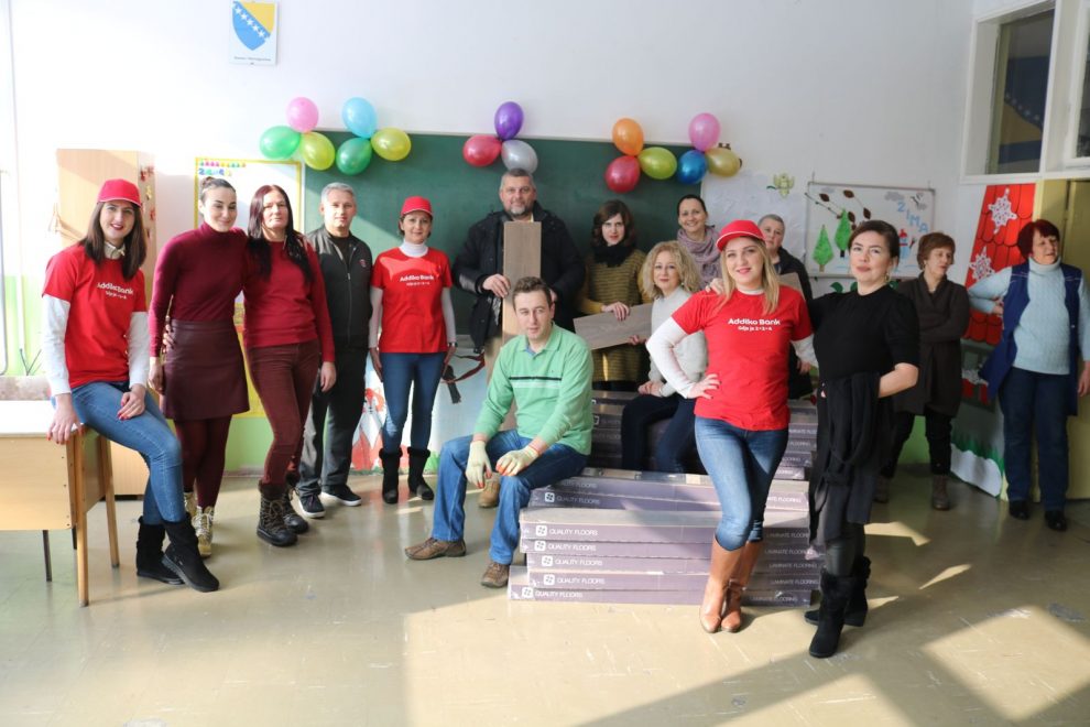 Prva ovogodišnja aktivnost u okviru Addiko Cares bilo je volontiranje zaposlenika Addiko banke u OŠ Meša Selimović u Zenici, u okviru kojeg su, zajedno sa zaposlenicima škole postavili novi pod.