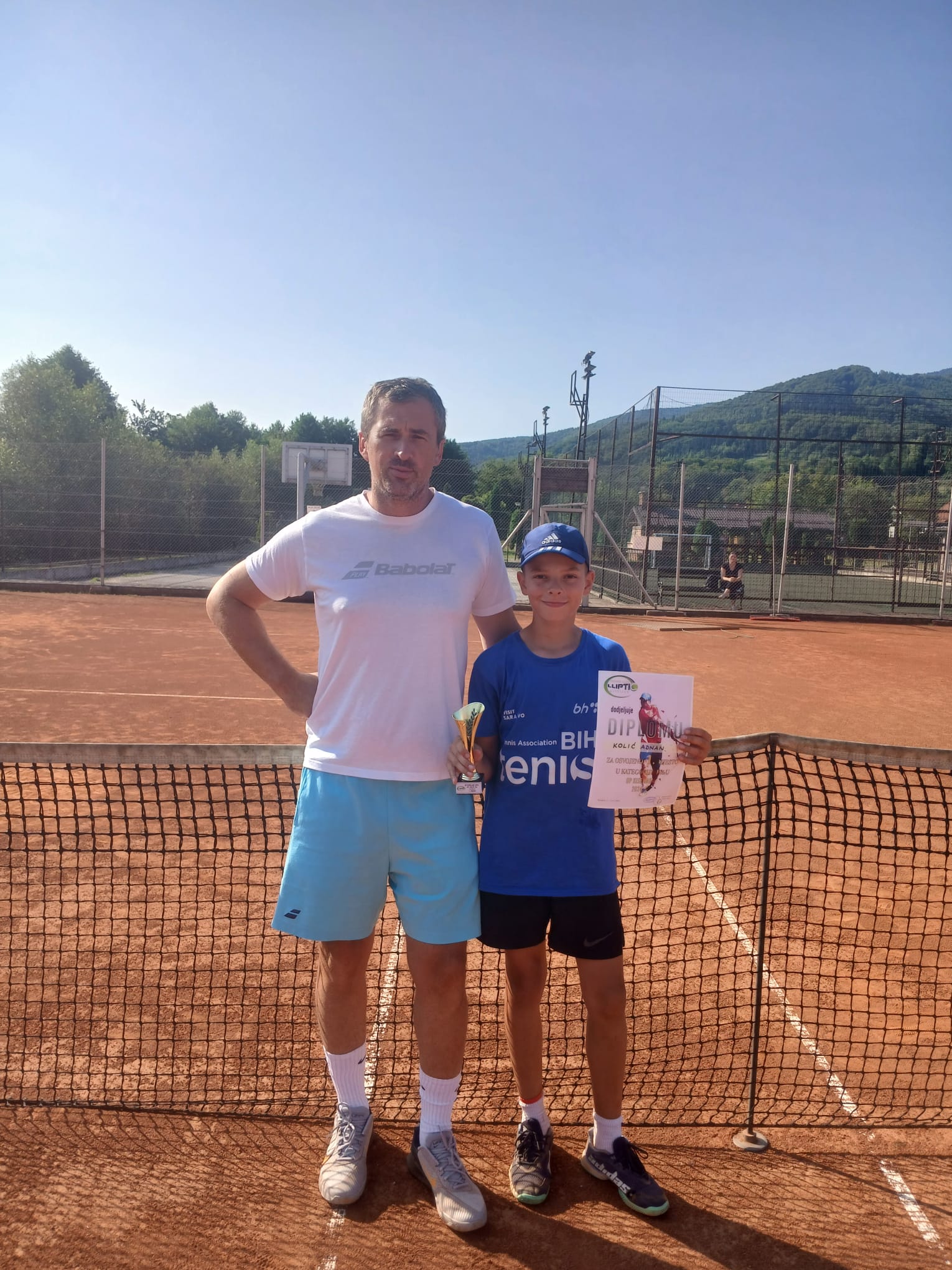 “Zahvaljujemo se trenerima tenisa Ajdinu i Dini Dauldži, kao i treneru kondicionom Goranu Dimitrieski na velikoj predanosti, radu i disciplini. Iskreno se nadamo da ce nadlezni prepoznati talenat i rad ovog mladog djecaka i omoguciti mu osnovne uslove za treniranje” istakli su iz tima Adnana Kolića.