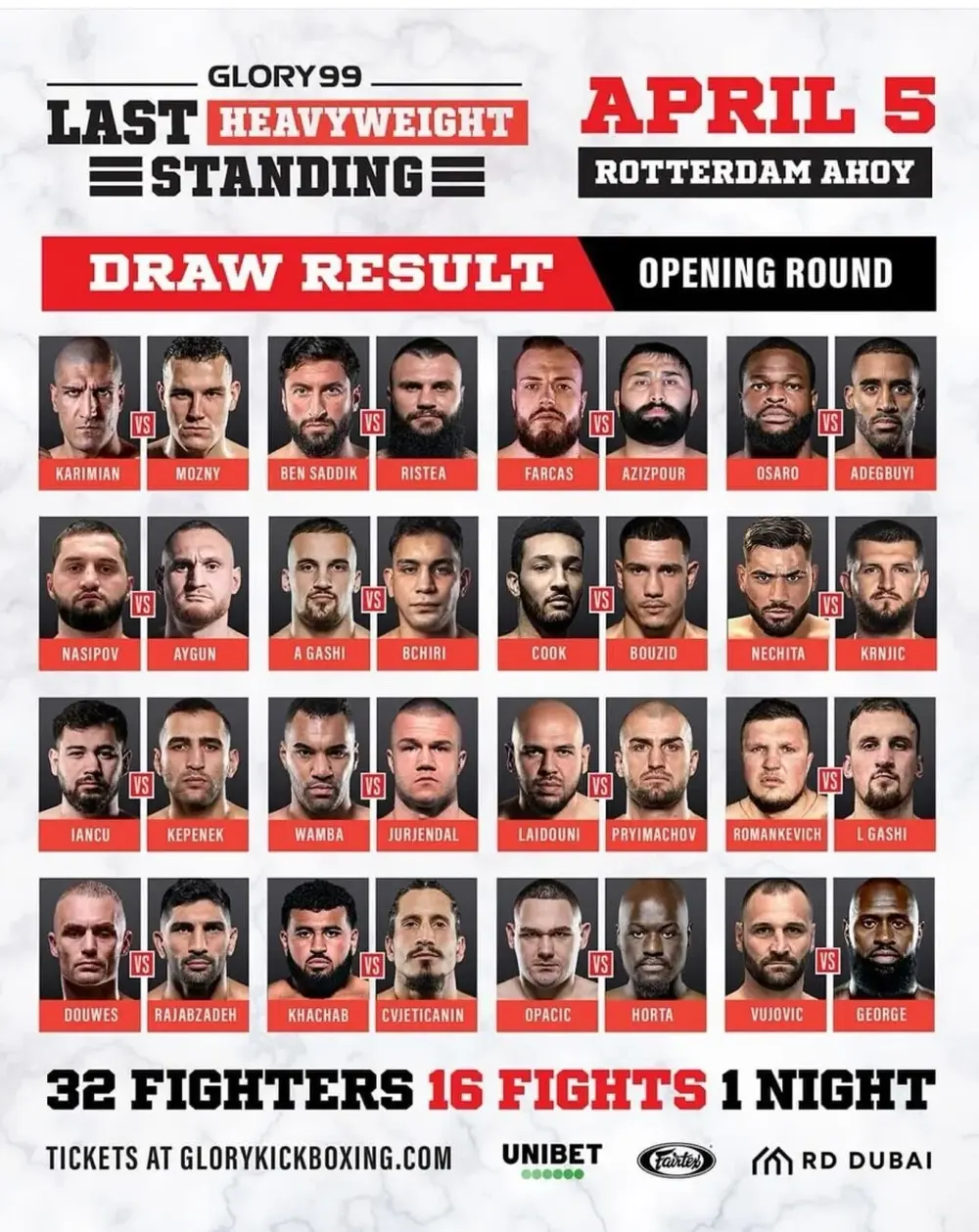 Tokom takmičenja u Rotterdamu, odnosno prve noći turnira, bit će održano čak 16 borbi, odnosno sve u okviru prve runde. Pogledajte parove, na priloženom plakatu – fotografiji u nastavku.
