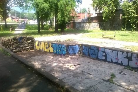 Park na fotografijama nalazi se u samom centru grada. Na sredini se nalazi betonski „bazen“ koji narušava njegov izgled i ničemu se služi. Naprotiv!