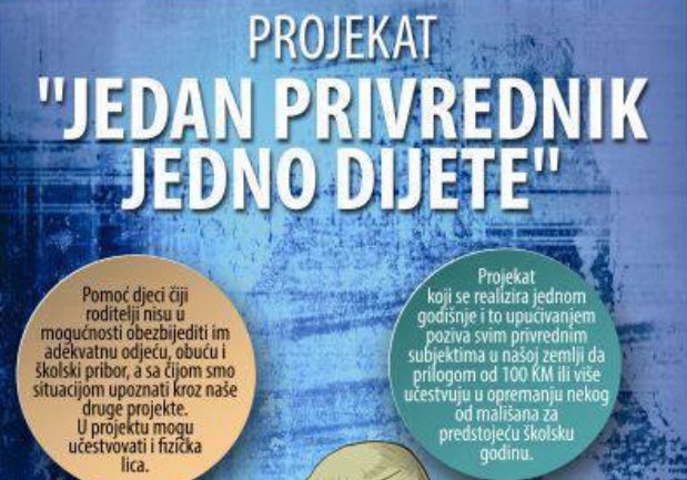 sa naznakom za projekat “JEDAN PRIVREDNIK – JEDNO DIJETE”,