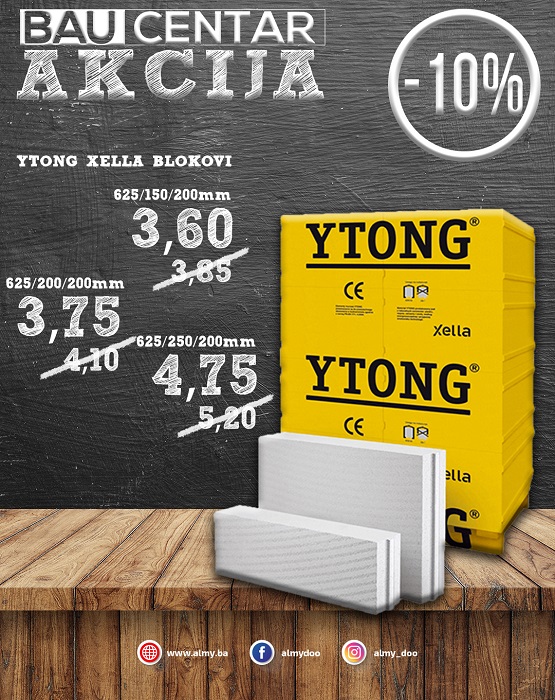 YTONG Xella blokovi sniženi 10% u Bau centru Zenica i Zavidovići.