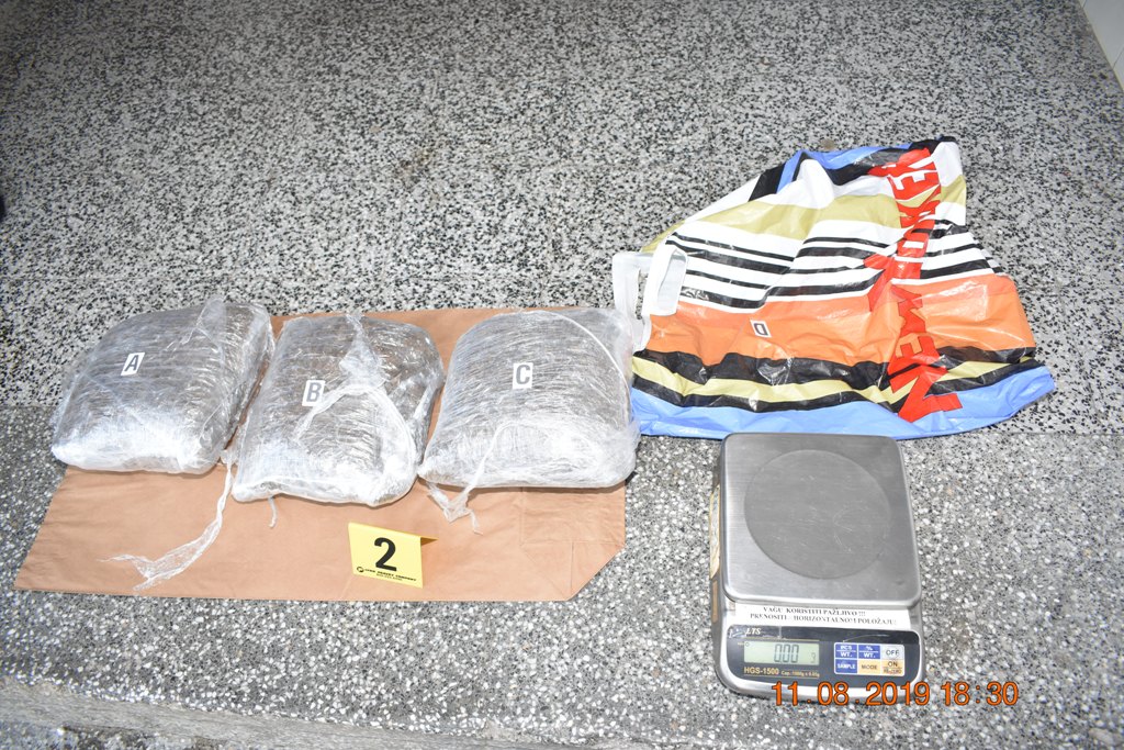 Akcijom policije u Zenici pronađen je i oduzet 3,1 kg opojne droge – Dana 11.08.2019. godine, u 17,50 sati, u Zenici, u ulici Avde Smajlovića, u okviru pojačanih mjera i radnji koje su poduzimane sa ciljem pronalaska i oduzimanja predmeta iz krivičnih djela, sredstava izvršenja krivičnih djela, oružja, opojnih sredstava i drugih nedozvoljenih predmeta, od strane službenika policije Policijske stanice Crkvice je, a u skladu sa određenim saznanjima i obavještenjima do kojih se došlo operativnim radom na terenu, izvršena kontrola putničkog motornog vozila marke “GOLF V”, u kojem su se nalazila dva lica. Izvršenim legitimisanjem lica utvrđeno je da se radi o licima: B.S., rođen 1991. godine i S.N., rođen 1986. godine, oba lica iz Zenice. Prilikom pregleda vozila i lica, policijski službenici su pronašli tri veća upakovana sadržaja biljne materije, koja svojim izgledom asocira na opojnu drogu. Sporna materija je oduzeta a izvršenim vaganjem i preliminarnim vještačenjem je utvrđeno da se radi o opojnoj drogi marihuani, ukupne težine 3 101 grama.