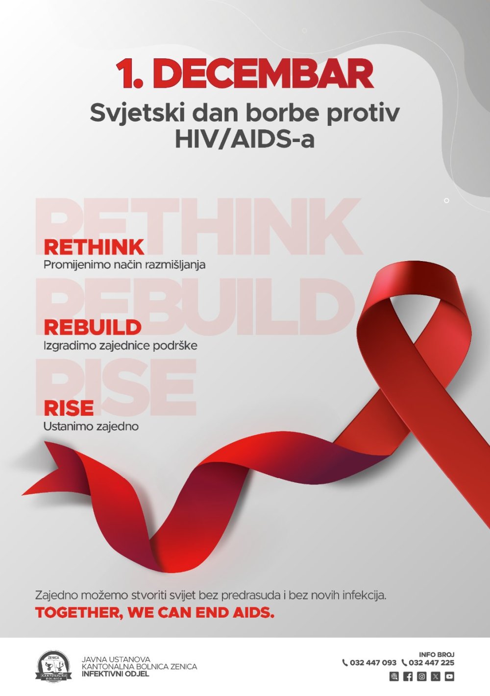 Povodom obilježavanje 1.decembra Svjetskog dana borbe protiv HIV/AIDS-a Odjela za Infektivne bolesti KBZ-a planira sljedeće aktivnosti: