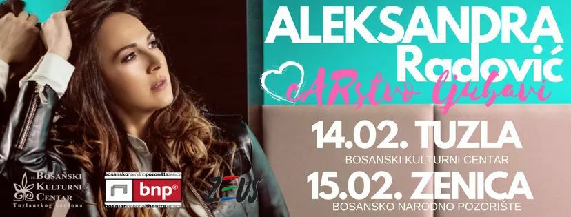 Aleksandra Radović – koncert 15. februara u BNP Zenica – Iako je do 15. februara ostalo još gotovo dva mjeseca, unaprijed se radujemo. Edin Memić i agencija ZUES nam dovodi u BNP Zenica Aleksandru Radović, i to 15. februara. Više detalja o kupovini ulaznica i ostalim detaljima naravno, na vrijeme i naravno, na Zenicablogu.