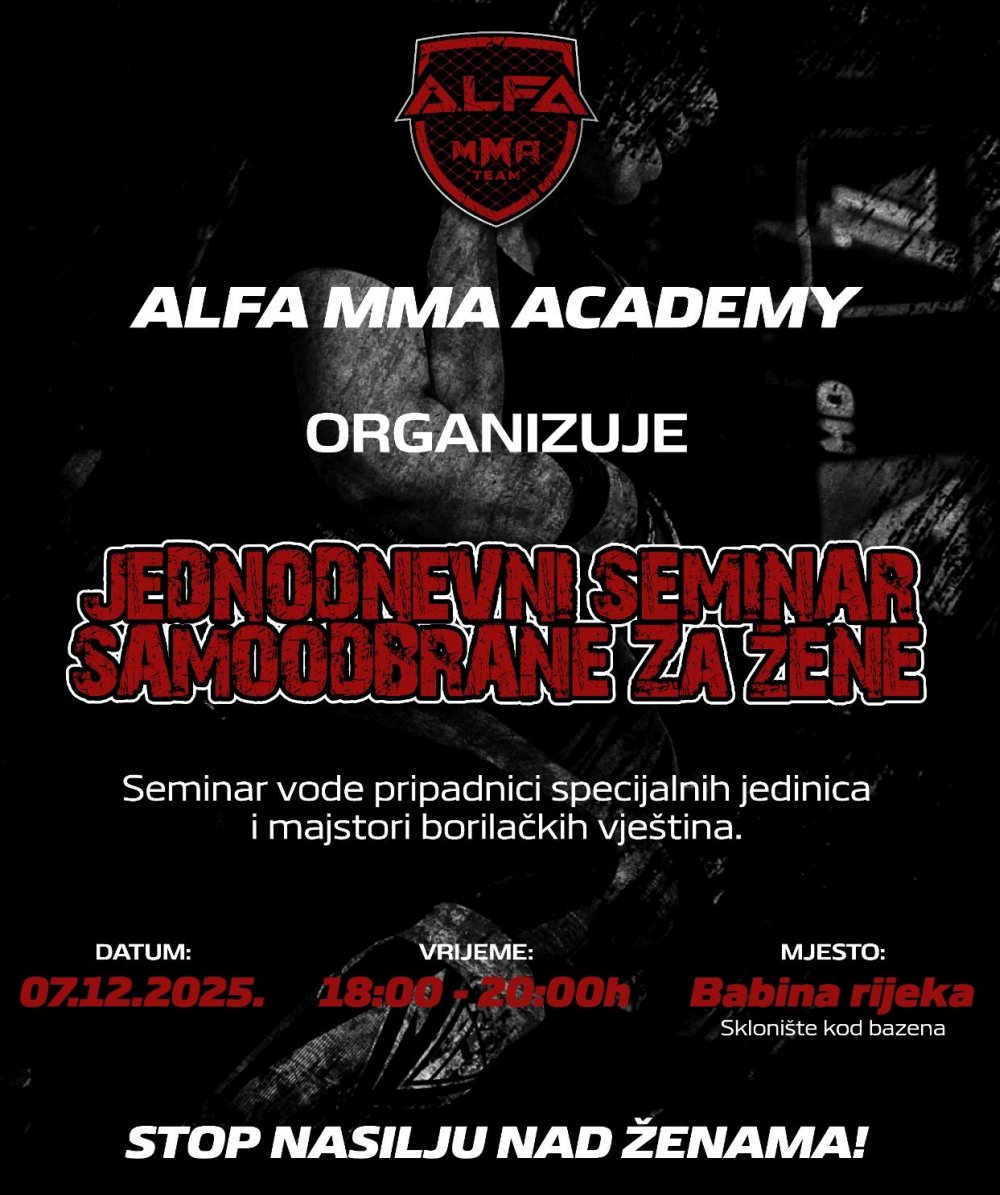 Zbog sve učestalijih slučajeva femicida i nasilja nad ženama u našoj zemlji, ALFA MMA Academy organizuje specijalni jednodnevni seminar samoodbrane za žene, s ciljem edukacije, osnaživanja i pružanja alata za ličnu sigurnost.