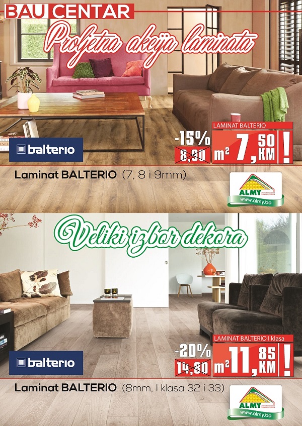Almy bau centar: velika proljetna akcija laminata Balterio – U toku je velika proljetna akcija laminata Balterio u našem bau centru u Zenici sa sniženjima i do 20%.