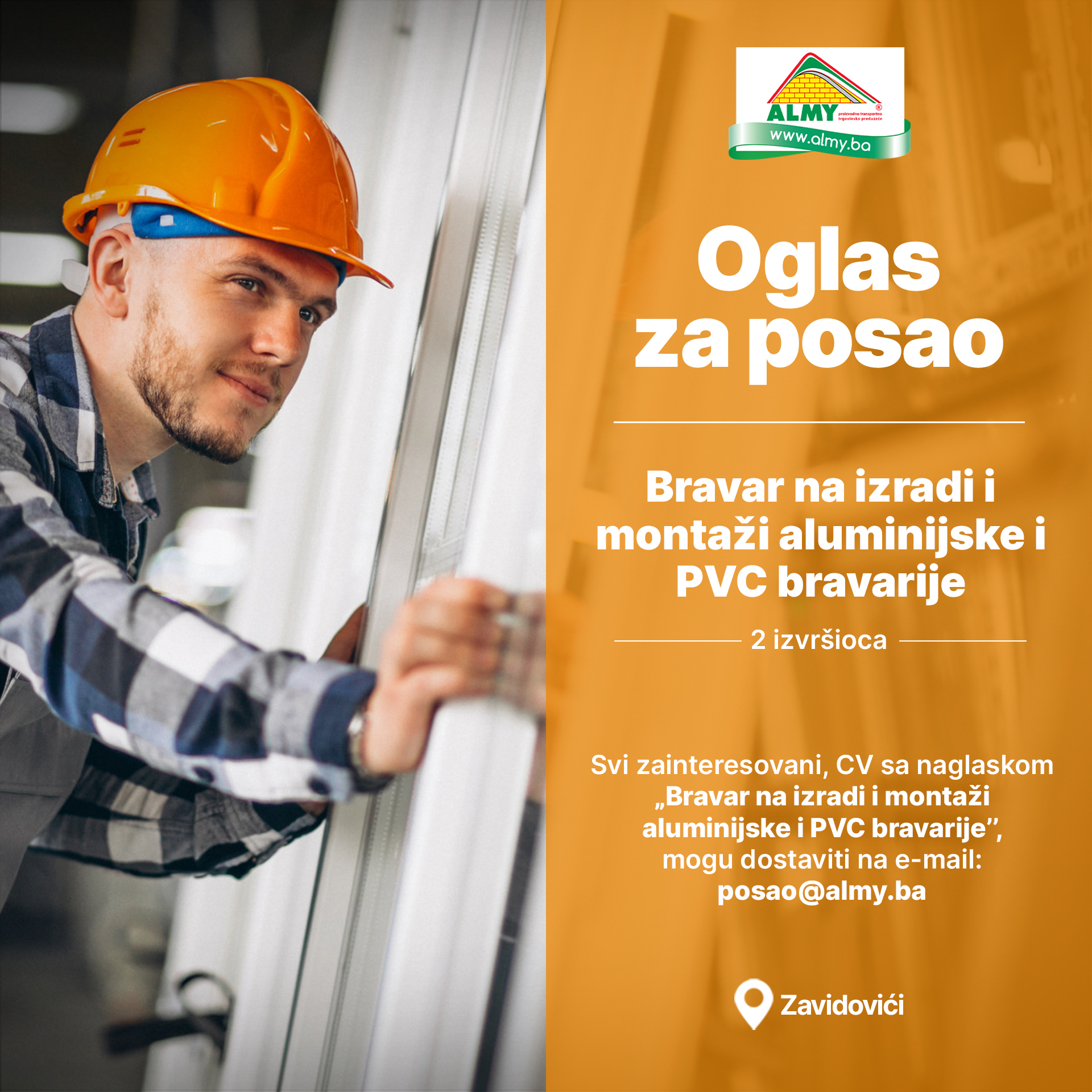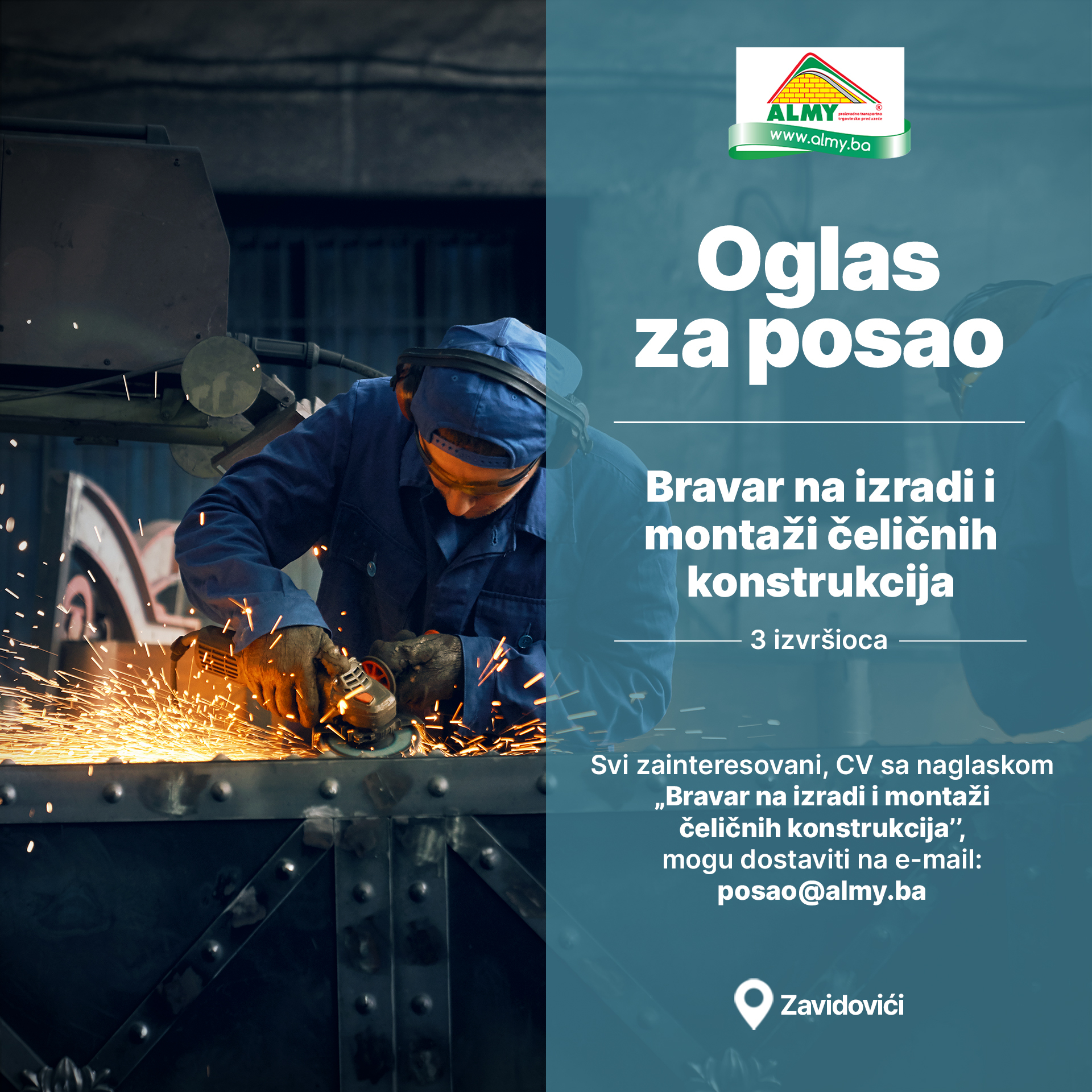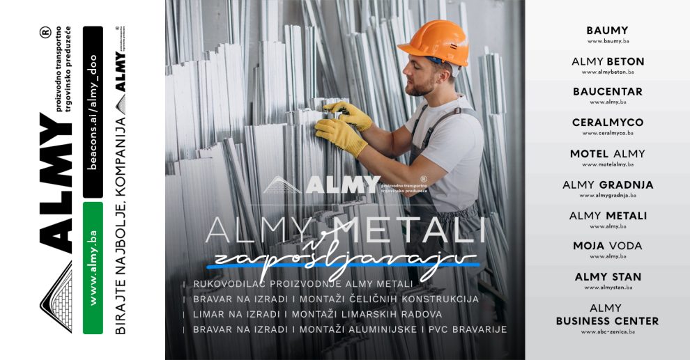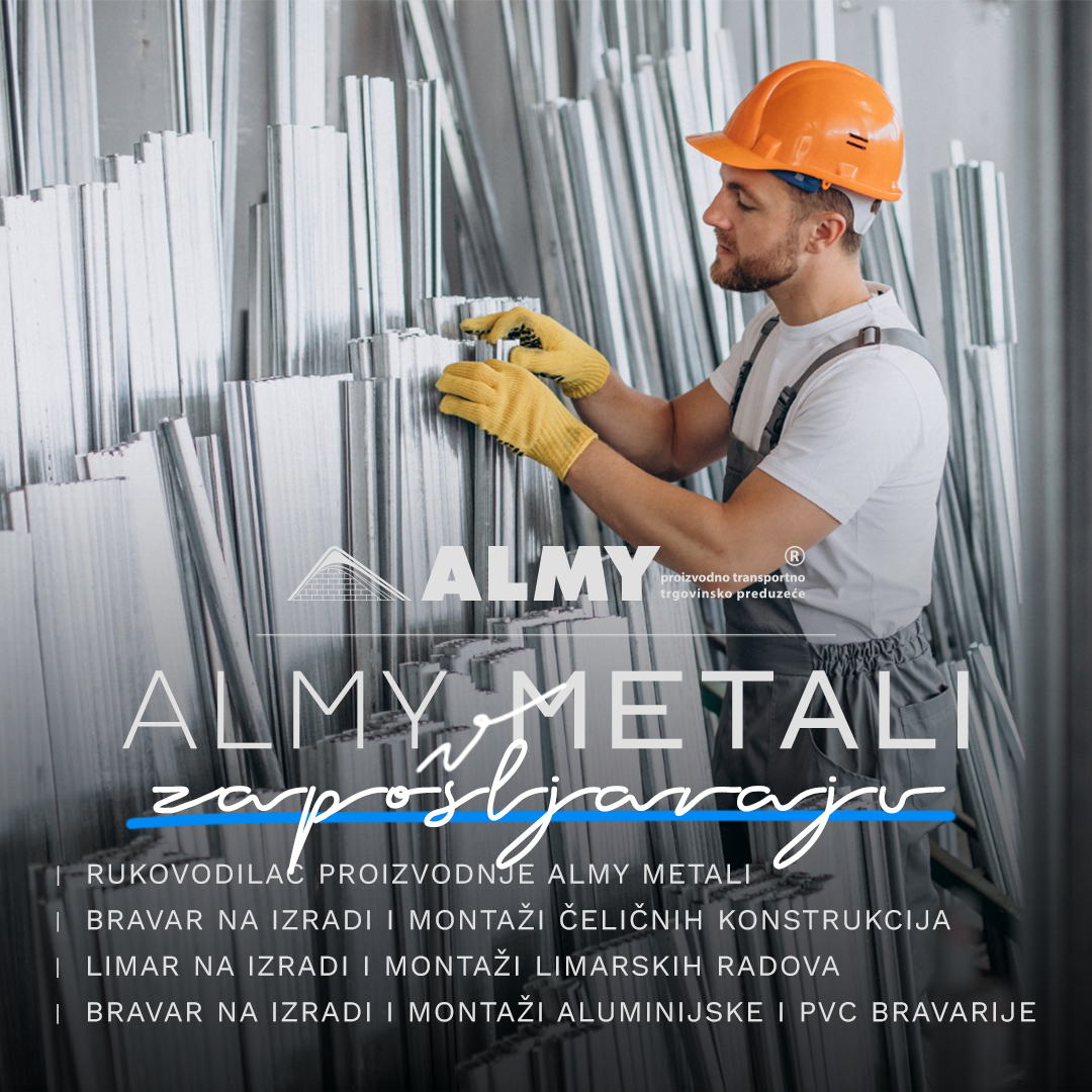 Almy Metali Zavidovići zapošljavaju: Potrebni limari, bravari i rukovodilac proizvodnje- Kompanija Almy Metali Zavidovići širi svoj tim i otvara konkurse za sljedeće radne pozicije: