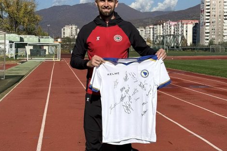 • Drugi dres je dres reprezentacije BiH, ali s posebnim potpisima Humanih zvijezda BiH. Na njemu su, pored mog, i potpisi legendi poput Elvira Bolića, Ermina Zeca, bivšeg selektora Mehmeda Baždarevića, Vlatka Glavaša, Adisa Nurkovića i mnogih drugih!