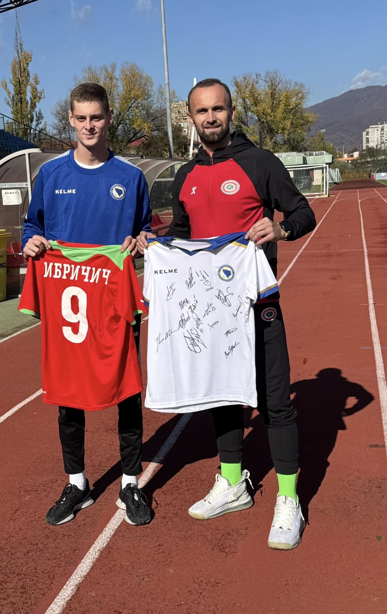 • Drugi dres je dres reprezentacije BiH, ali s posebnim potpisima Humanih zvijezda BiH. Na njemu su, pored mog, i potpisi legendi poput Elvira Bolića, Ermina Zeca, bivšeg selektora Mehmeda Baždarevića, Vlatka Glavaša, Adisa Nurkovića i mnogih drugih!