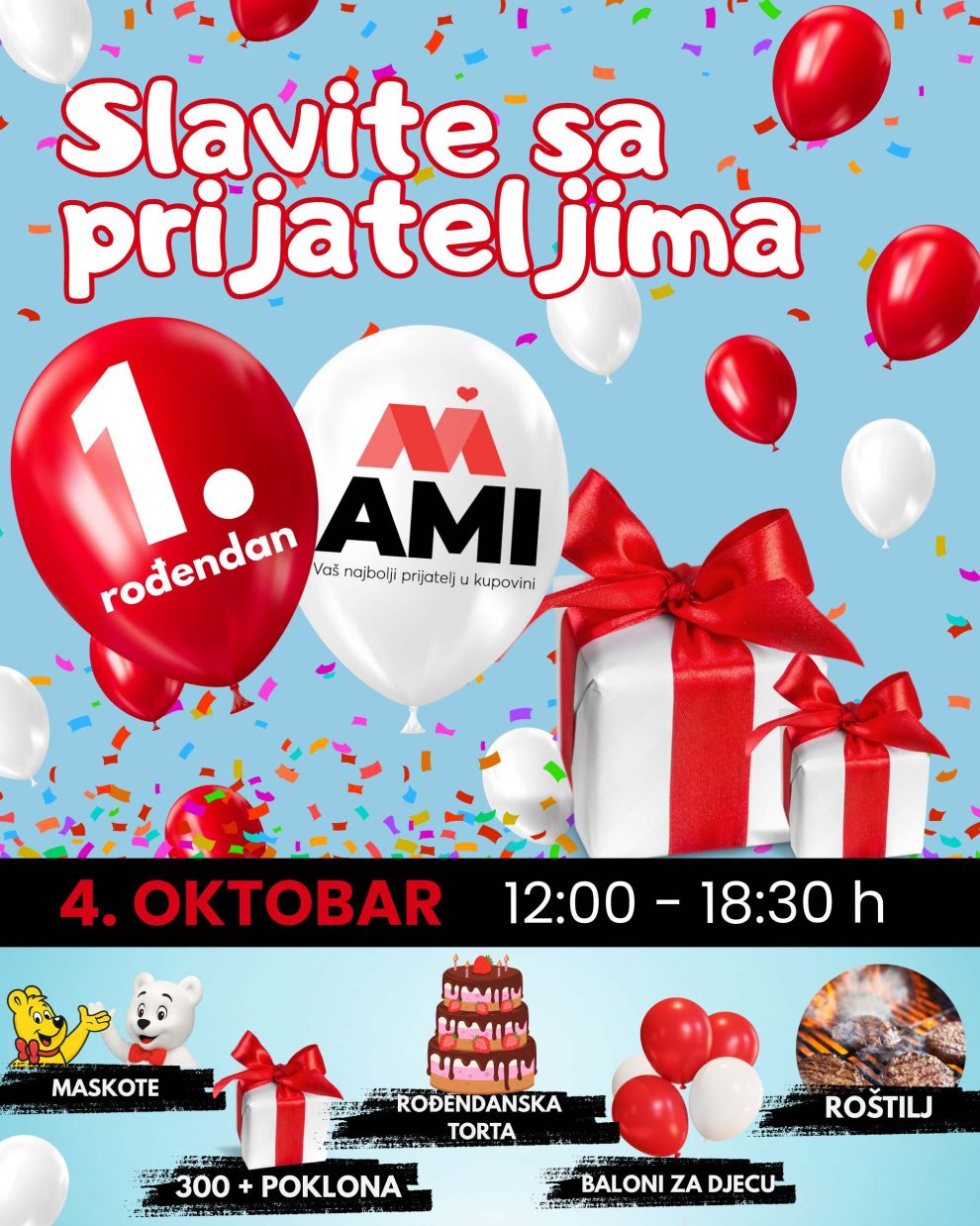 Ne propustite priliku da budete dio slavljeničke atmosfere i uživate u posebnim iznenađenjima koja Vas čekaju u AMI Marketu Zenica!