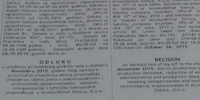 Dodao je,  da se Sindikat protivi angažovanju eksternih firmi za poslove za koje mogu biti angažovani radnici ArcelorMittal Zenica,te da će otpočeti i pregovori sa Upravom oko usaglašavanja kolektivnog ugovora na nivou kompanije sa odredbama novog Zakona o radu.