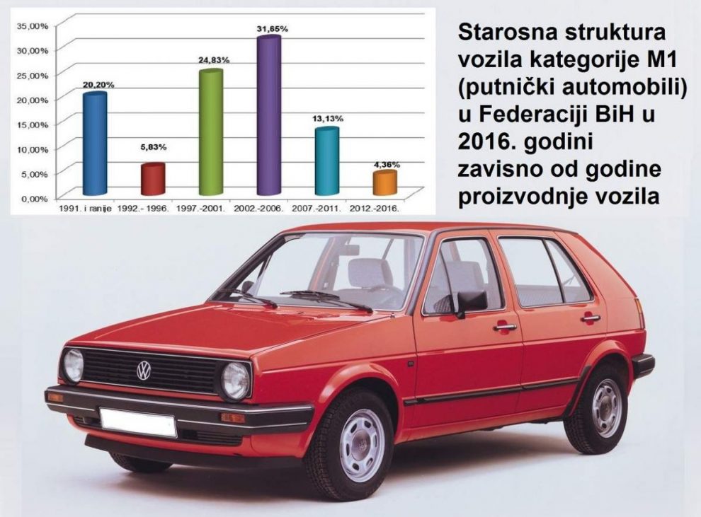 Svaki peti putnički automobil stariji je od 25 godina, svaki četvrti je starosti 15-20 godina, svaki treći 10-15 godina. Kada se saberu svi podaci dolazi se do nimalo ohrabrujućeg zaključka da je više od 80 procenata automobila u Federaciji BiHstarije od deset godina.