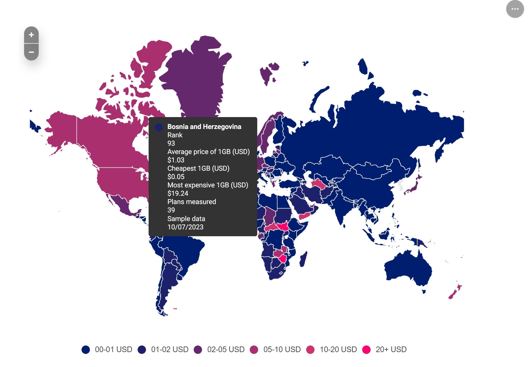 Analiza cijena mobilnog internet prometa u svijetu – gdje se po cijenama nalazi BiH?