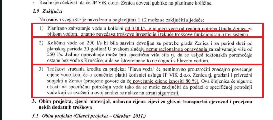 Analiza stručnjaka daleko od javnosti: iz zeničkog VIK-a pisali Gradonačelniku – “Plave vode” previše, cijene skaču 80 posto, dobićemo je u neprikladnim cijevima… Blog 32.vijećnik  objavio je sadržaj Odgovora, kojeg su još prošle godine, na zahtjev, uputili uredu Gradonačelnika Zenice, u vezi realizacije projekta “Plava voda”.