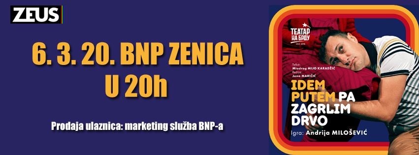 Zahvaljujući Agenciji «Zeus»  iz Tuzle novu hit predstavu Andrije Miloševića publika u Zenici moći će pogledati 6. marta na sceni BNP – a.