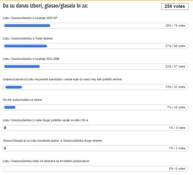 Putem Facebook aplikacije glasalo je 256 osoba, a rezultate pogledajte u nastavku – pitanje je glesilo – da su danas izbori, glasao/glasala bi za: