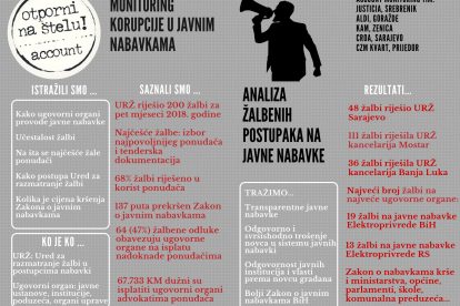 “ URŽ je donio 137 odluka u korist ponuđača, što znači da su njihove žalbe bile osnovane, odnosno utvrđeno je kršenje Zakona o javnim nabavkama BiH. Ako imamo podatak da su ugovorni organi samo za pet mjeseci prekršili zakon 137 puta, onda svjedočimo svakodnevnom neodgovornom i nesavjesnom provođenju javnih nabavki od strane javnih institucija, ustanova, preduzeća i organa uprave. Ugovorni organi su dužni isplatiti 67.733 KM žaliteljima/ponuđačima na ime advokatskih usluga. To je budžetski novac, novac građana BiH. Cijenu grešaka ugovornih organa, cijenu kršenja Zakona o javnim nabavkama plaćaju građani”, ocjenjuje Damir Šabanić iz UG Justicia, lidera ACCOUNT monitoring tima.