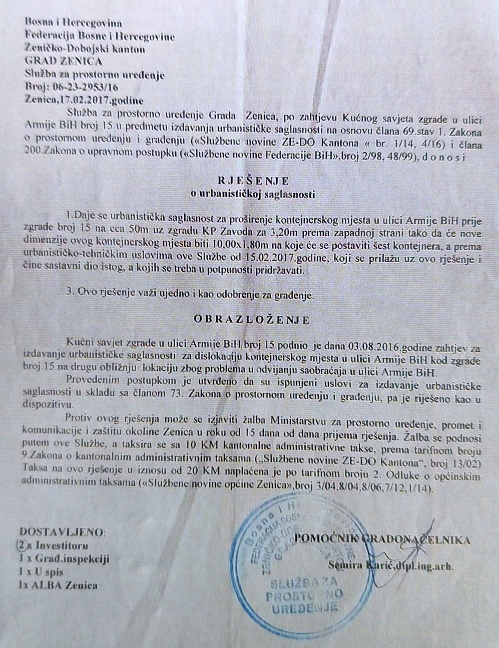 Redakciji Zenicabloga obratio se Kućni savjet zgrade u ulici Armije RBiH na broju 15.
