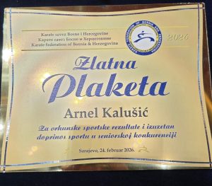 Zlatna plaketa Karate saveza BiH uručena u Sarajevu predstavlja najnovije priznanje za karijeru koja je Bosnu i Hercegovinu godinama predstavljala na najvećim međunarodnim takmičenjima i koja je značajno doprinijela razvoju karatea u zemlji.