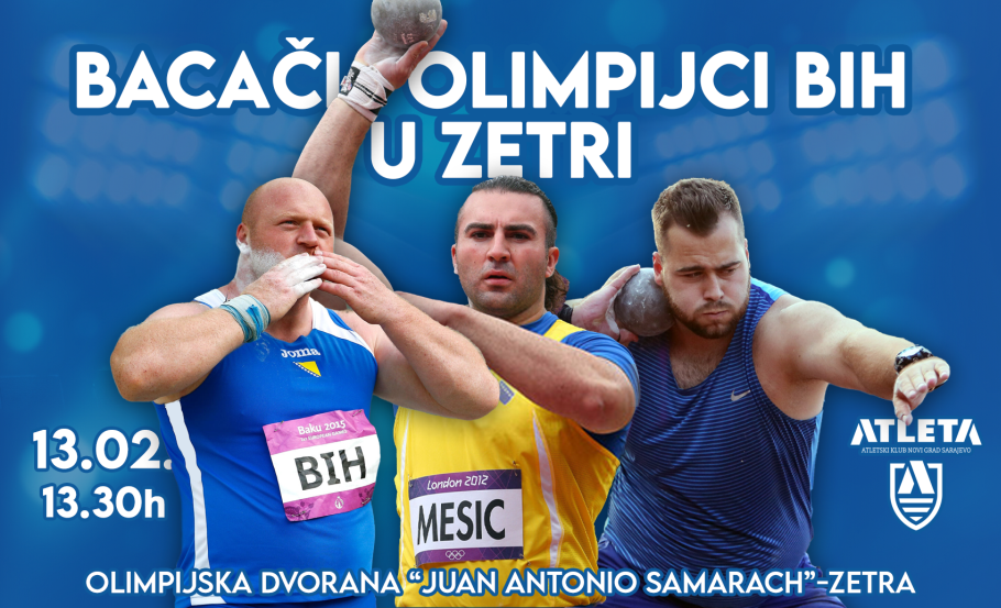Atletski savez Federacije BiH okuplja bacače olimpijce BiH u Zetri- U sklopu Dvoranskog prvenstva Federacije BiH za mlađe kategorije održat će se i seniorsko takmičenje u bacanju kugle. Isto takmičenje će poslužiti i kao posljednja kontrola za Balkansko prvenstvo. Pored olimpijaca Mesuda Pezera, Kemala Mešića i Hamze Alića bit će prisutan i naš proslavljeni bacač kugle Zlatan Saračević.
