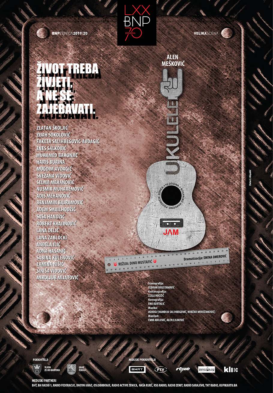 Premijerom predstave “Ukulele Jam” BNP Zenica proslavlja 70. rođendan – Povodom obilježavanja značajnog jubileja 70. godina aktivnog rada Bosanskog narodnog pozorišta Zenica i u čast tome nastupajuće premijerne izvedbe predstave „Ukulele Jam“ prema tekstu Alena Meškovića, u režiji Dine Mustafića i produkciji Bosanskog narodnog pozorišta Zenica, na Velikoj sceni zeničkog BNP-a održana je konferencija za medije na kojoj su govorili direktor Bosanskog narodnog pozorišta Zenica Hazim Begagić, reditelj Dino Mustafić, gostujući glumac Zijah Sokolović, dramaturginja Emina Omerović, glumac u predstavi i novoimenovani direktor BNP-a Miroljub Mijatović, članovi glumačke podjele predstave i ansambla BNP Zenica Zlatan Školjić, Snežana Vidović, Selma Mehanović i Mugdim Avdagić.