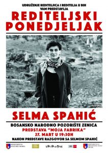 Rediteljske večeri su prethodno organizirane sa Danisom Tanovićem i Pjerom Žalicom, a prva rediteljska večer nakon pozorišne predstave će biti organizirana u BNP-u sa Selmom Spahić nakon izvedbe predstave ”Moja Fabrika”, nastale prema knjizi Selvedina Avdića, u režiji Selme Spahić.