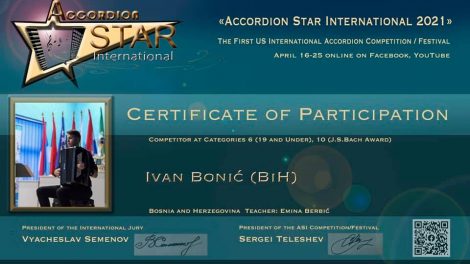 Učenici Srednje muzičke škole u Zenici, Ivan Bonić i Adi Kobilica, iz klase prof. Emine Berbić, učestvovali su na prvom online takmičenju...