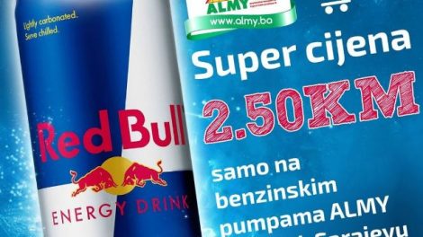 Super cijena energetskog pića Red Bull u marketima benzinskih pumpi Almy u Zenici, Zavidovićima i Sarajevu.