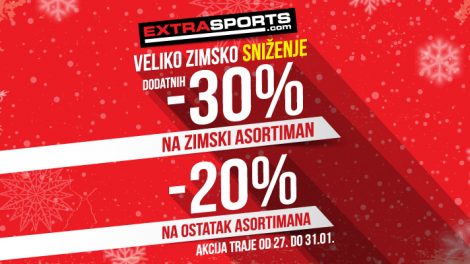 Iskoristite veliko zimsko sniženje u Extra Sports radnjama! U periodu od 27. do 31. januara spremili smo dodatnih 30% popusta na već snižen zimski...