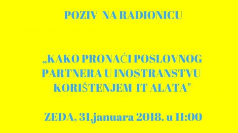 Obavješavamo vas da Zenička razvojna agencija ZEDA i Udruženje poslodavaca Zenica, organizuju radionicu „KAKO PRONAĆI POSLOVNOG PARTNERA U...