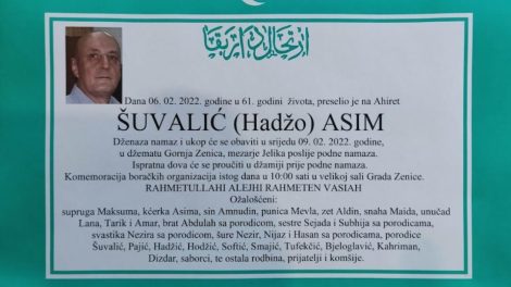 Na Ahiret je preselio veliki čovjek i patriota Asim Šuvalić. Brigadir Šuvalić je bio jedan od organizatora otpora agresiji na našu domovinu i ratni...