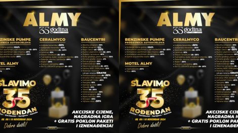 ⭕️ Kompanija Almy slavi 35. rođendan! ⭕️ Od 08. do 10.11.2024. očekuju vas tri dana velikih sniženja u maloprodajnim objektima kompanije Almy ⭕️...