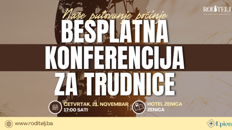 Pozivamo sve trudnice da se pridruže besplatnoj konferenciji „Naše putovanje počinje“, koja će se održati 21. novembra 2024. godine u Hotelu Zenica...