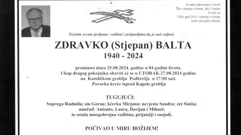 Zdravko Balta, dugogodišnji direktor JU Muzej grada Zenice, preminuo je u 84. godini života. Balta je dužnost direktora preuzeo krajem 1988. godine...