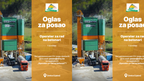Almy d.o.o. Zenica objavljuje konkurs za prijem u radni odnos: Pozicija: Operater za rad na betonari Lipice Lokacija: Zenica/Lipice Broj izvršilaca:...