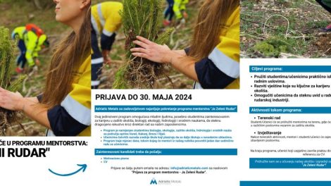 Adriatic Metals BH d.o.o., lider savremenog i održivog rudarenja u regiji Jugoistočne Evrope, objavio je danas poziv za prijave na Konkurs pod...