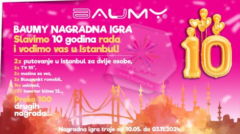Nagradna igra: BAUMY slavi 10 godina- Učestvuj u BAUMY nagradnoj igri! BAUMY slavi 10 godina rada i vodi vas u Istanbul… Učestvovati možete...