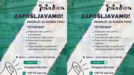‼️‼️Konkurs za Veterinara‼️‼️ Lokacija: Zenica Pet Shop Pandica raspisuje konkurs za prijem veterinara u radni odnos. Opis posla: * Savjetovanje...