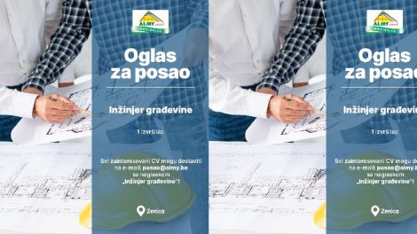 Oglas za posao: Inžinjer građevine- Almy d.o.o. Zenica objavljuje konkurs za prijem u radni odnos: Pozicija: Inžinjer građevine Lokacija: Zenica Broj...