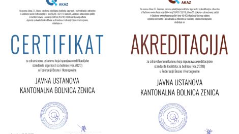 Obavještavamo javnost da je Rješenjem Agencije za kvalitet i akreditaciju u zdravstvu u Federaciji Bosne i Hercegovine/ AKAZ-a JU Kantonalnoj bolnici...