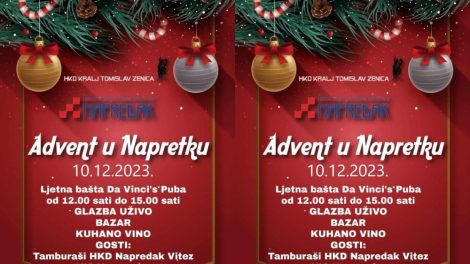 HKD Kralj Tomislav Zenica i HKD Napredak Zenica u nedjelju, 10.12.2023., organiziraju manifestaciju “Advent u Napretku”. Manifestacija će...