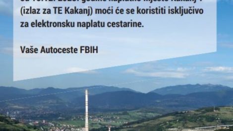 Javno preduzeće Autoceste Federacije Bosne i Hercegovine informisalo je javnost da se način ručne naplate cestarine ukida na izlazu za TE Kakanj...