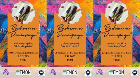 Galerija „Preporod“ Zenica ,u okviru projekta „Hobi kao posao“ ,realizovat će treću radionicu za djevojke završnog razreda JU Mješovira srednja škola...