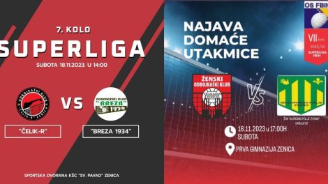 Ove subote, 18.11. 2023. godine, u Zenici se igraju dvije utakmice u Superligi Federacije BiH za žene, grupa Jug, sezona 2023/2024. U ovoj ligi iz...